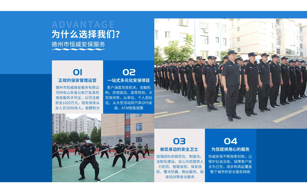 - 德州市恒威安保服務有限公司,注冊資金1020萬元。是經(jīng)山東省公安廳批準、德州市工商管理局登記注冊、具有獨立法人資格的專業(yè)保安服務公司,下設10個職能科室和業(yè)務部...